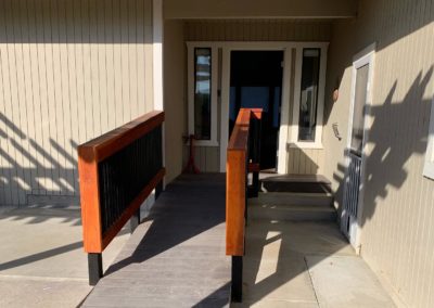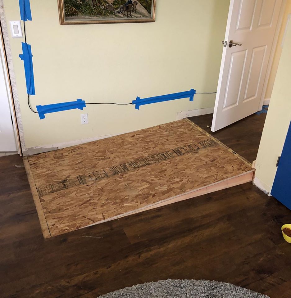 See what we did there? Yep – raised the floor! Which means we raised the partial wall height, and anything else that needed to raise due to the new floor height. We tried to make it look flawless. How do you think we did. (psst… we ever got lucky with matching the floor colors…) ADA ready!
